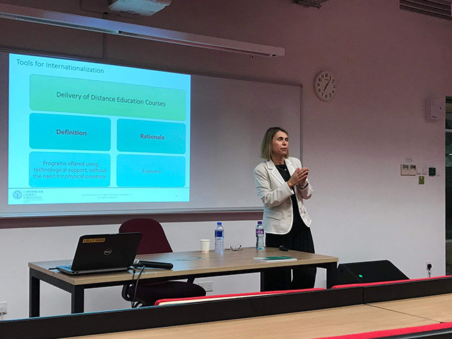 Magda Ferro, responsável pelo International Office da Católica, no Porto, esteve na Universidade de São José (USJ), em Macau, para ser oradora na primeira semana de internacionalização desta Universidade. Além da palestra sobre gestão de internacionalização que foi aberta ao público em geral, e que contou com a presença bastante ativa do Reitor e dos Vice-Reitores da USJ, Magda Ferro foi também responsável pela dinamização de vários workshops e pela formação para os diretores dos serviços da Universidade de S. José nas áreas de internacionalização e gestão.